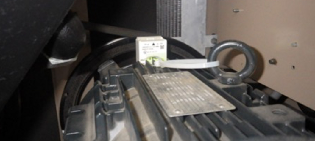 工場に圧縮空気を供給するためのレシプロコンプレッサーの駆動モータに無線振動センサを磁石で設置し、30分おきの振動加速度計測を数か月にわたり実施しました。